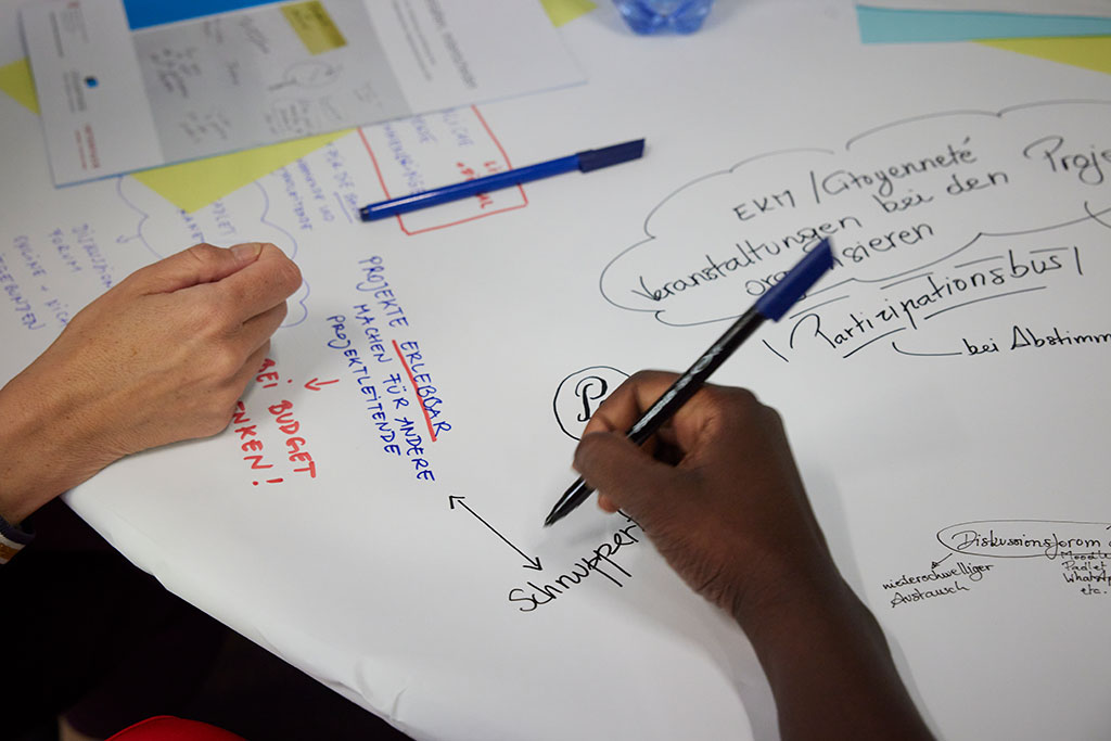 Die EKM Geschäftsstelle traf sich am 31. Mai 2023 mit Projektträgerinnen und Projektträgern sowie mit Partnerinnen und Partnern des Programms «Citoyenneté – mitreden, mitgestalten, mitentscheiden», um die Ergebnisse dieser Evaluation zu diskutieren und das Programm weiterzuentwickeln. Ziel war es, gemeinsam Wege zu finden, um den Zugang zur Projektförderung zu verbessern, die Austauschmöglichkeiten zu erweitern und die Visibilität des Programms zu erhöhen.